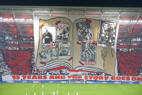 Leipzig - (23.10.2025) Wer RB Leipzig liebt, kennt das Gefühl: Flutlicht an, der Puls steigt – und dann hebt sich eine Choreo über den Rängen. Wir, die Rot-Weiße-Choreowerkstatt, sind RB-Fans, die ihre Leidenschaft in Bilder, Botschaften und unvergessliche Momente in der Red Bull Arena verwandeln – unabhängig von Fanclub-Zugehörigkeiten, offen, kreativ und mit Haltung.